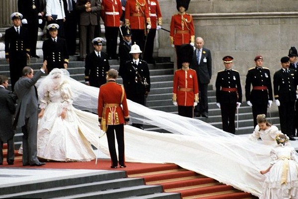 In totale, sono stati usati sei tipi di tessuto per cucire il vestito della principessa Diana. La lunghezza del velo nuziale era di circa otto metri e la sua produzione richiedeva ben 137 metri di tessuto. L'abito da sposa di Diana ornava il pizzo, che apparteneva alla regina Elisabetta stessa, e un piccolo ferro di cavallo d'oro con un diamante per fortuna. L'abito da sposa della principessa Diana è ancora considerato l'incarnazione del sogno di ogni ragazza - diventare una principessa sposando il principe.