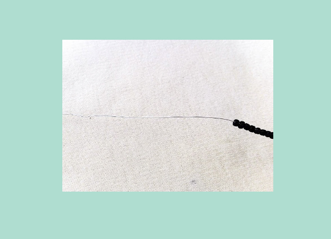 - Il nostro albero sarà composto da piccoli ramoscelli, uniti in rami più grandi. Pertanto, per cominciare, iniziamo a produrre un gran numero di ramoscelli bianchi e neri. Sul filo di perline, un po 'deviando dal bordo, stringa 8 perline e torcere in una foglia.