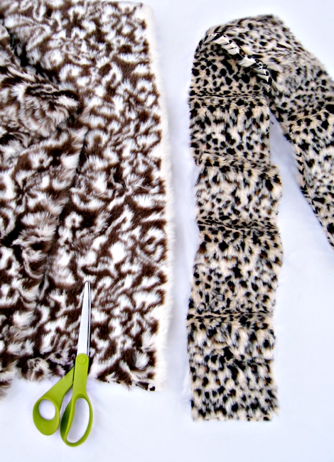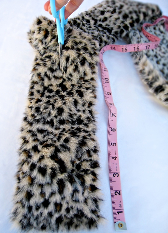 - Tagliare dall'intero pezzo di pelliccia due strisce di 13 cm per 130 cm.