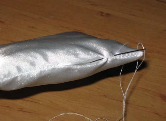 - Successivamente, riempiamo il cuscino degli anelli con le nostre mani con sinterizzabili o altri riempitivi. Cucire con punti segreti.