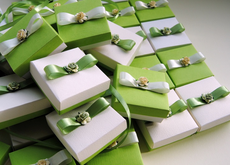 Affinché gli ospiti realizzino in tempo ciò che è in gioco, i tuoi inviti al matrimonio dovrebbero essere eccezionalmente verdi. È possibile inviare inviti sotto forma di erba decorativa con una carta in una pentola, è possibile allegare un invito a una mela verde, o semplicemente decorare buste classiche con carte con pizzo e nastri di verde.