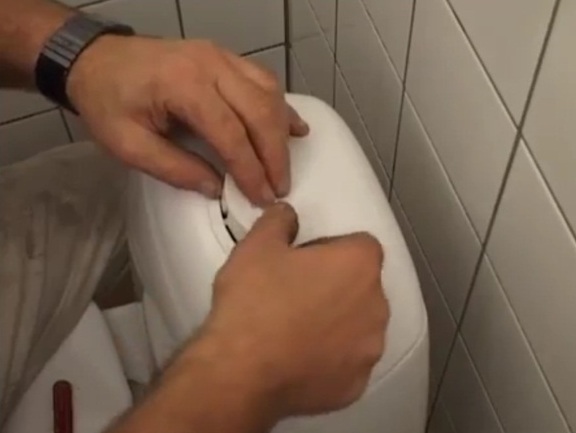 - La riparazione del water inizia con la rimozione del pulsante per lo scarico. Basta fare clic su di esso da un lato.