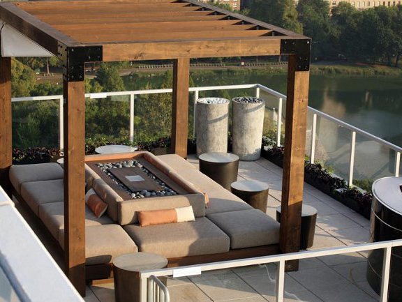 - Terrazza sul tetto della villa . Fare una tale struttura è un po 'più complicato di un normale terrazzo. Probabilmente, è necessario coinvolgere esperti qualificati per effettuare calcoli competenti e definire il carico ammissibile su un tetto di un edificio. È necessario fornire una rampa per il drenaggio dell'acqua, fare tutto in modo che le strutture interne dell'edificio non vengano danneggiate. Tali terrazze sul tetto possono essere utilizzate con successo come solarium, palazzetto dello sport, spazi aperti per la ricreazione.